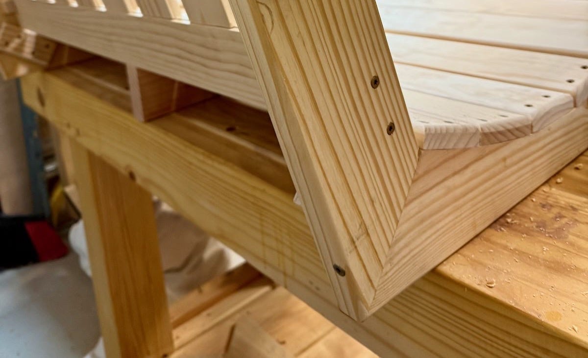 I glued and screwed the backrest into position, adding some braces behind it to help give it additional structural support. Now the only thing left was to build the arm rests.