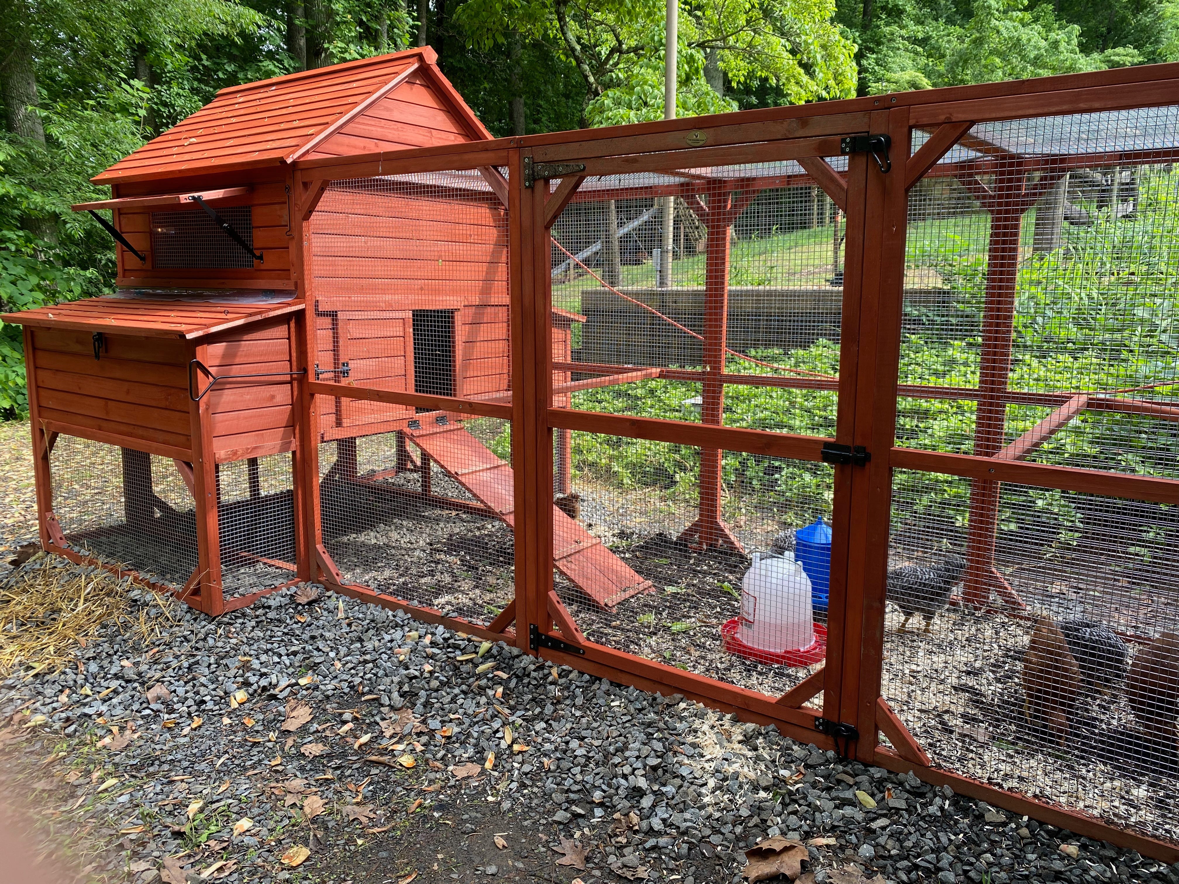 Smarter, I realized, was to assemble it adjacent to our yard barn. That’s where the food would be stored. There’s a water spigot right there. And electricity, too. So, I disassembled the coop, moved it to the new location, and put it back together — the right way this time. As they say, anything worth doing is worth doing twice in order to fix your mistakes from the first time.