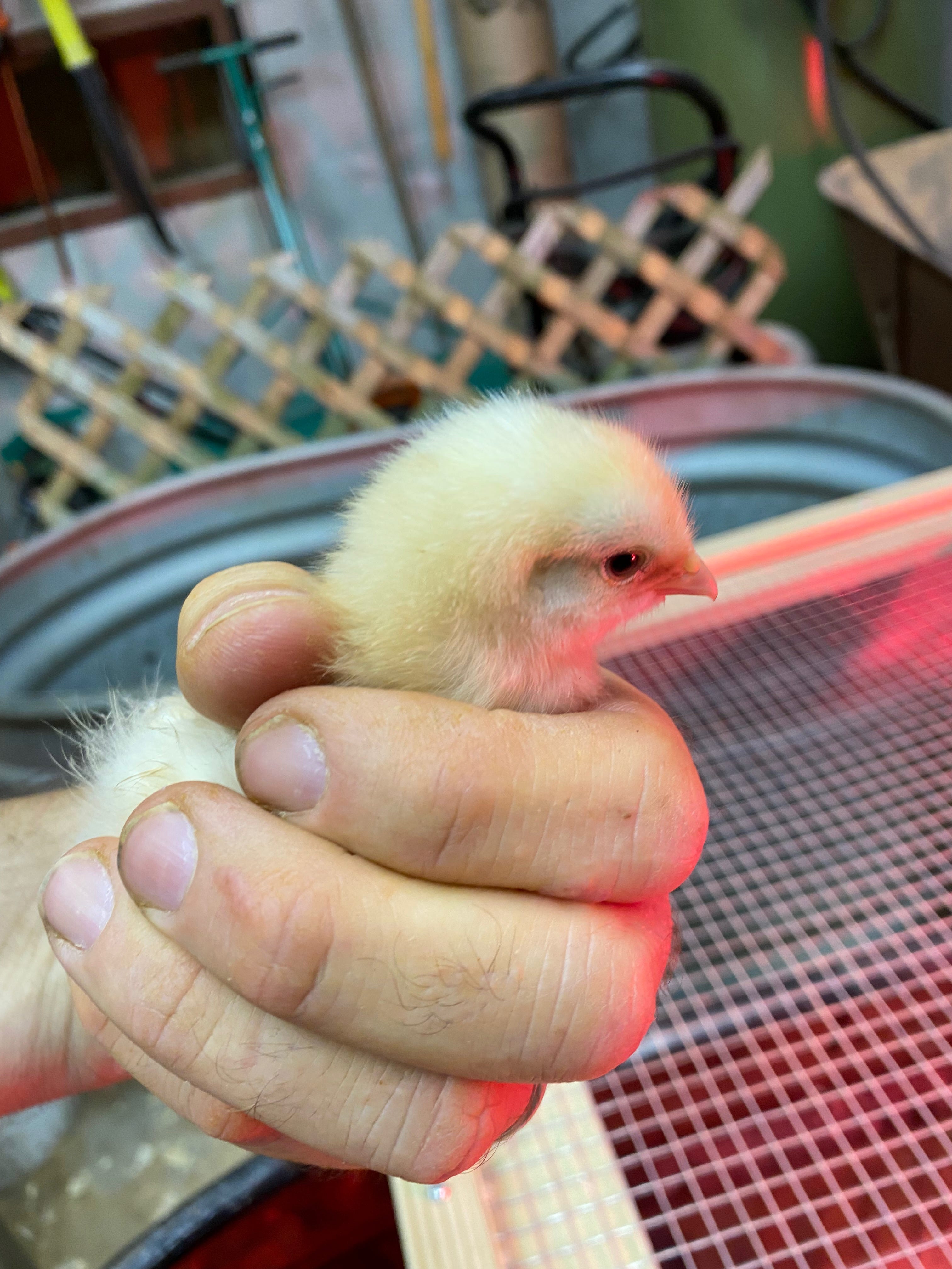 Our descent into becoming chicken people started in late April when Cyn brought home a box of baby chicks. There’s no denying that baby chicks are irrepressibly cute. Barely the size of a mini muffin, they are warm and soft and gentle.