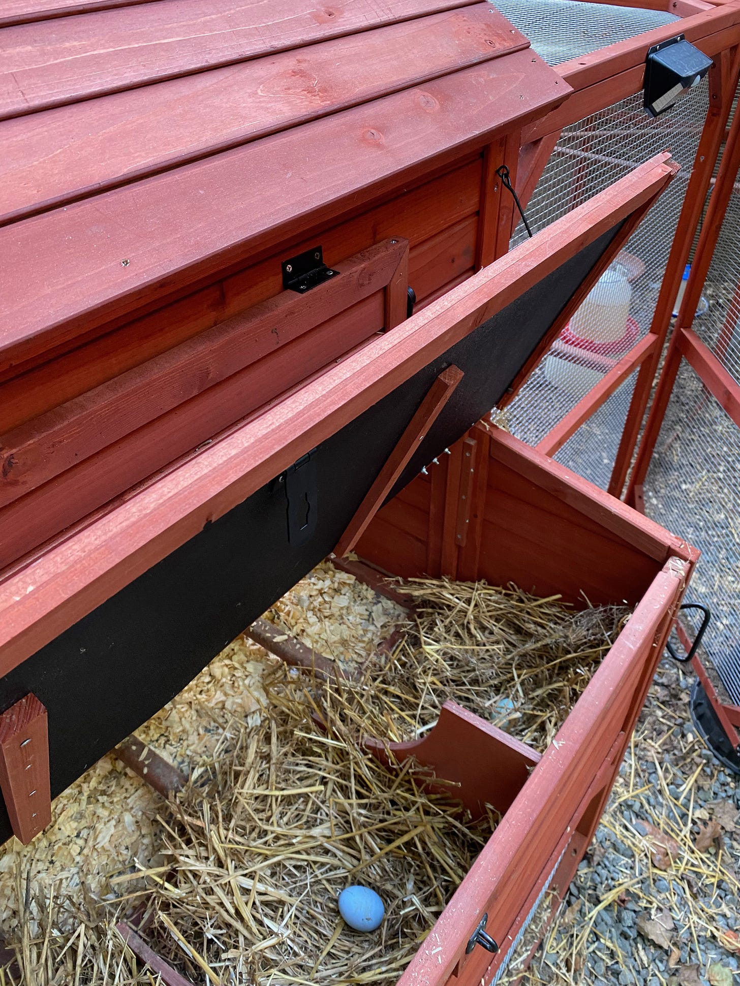 In any event, the porcelain eggs were the only ones there until one magical day, Sept. 28, almost exactly 24 weeks since the first hens came home, I opened the box and found a little brown egg sitting the in straw like some sort of present. It was surprisingly exciting, though I'm sure soon enough we'll have more eggs than we can scramble.