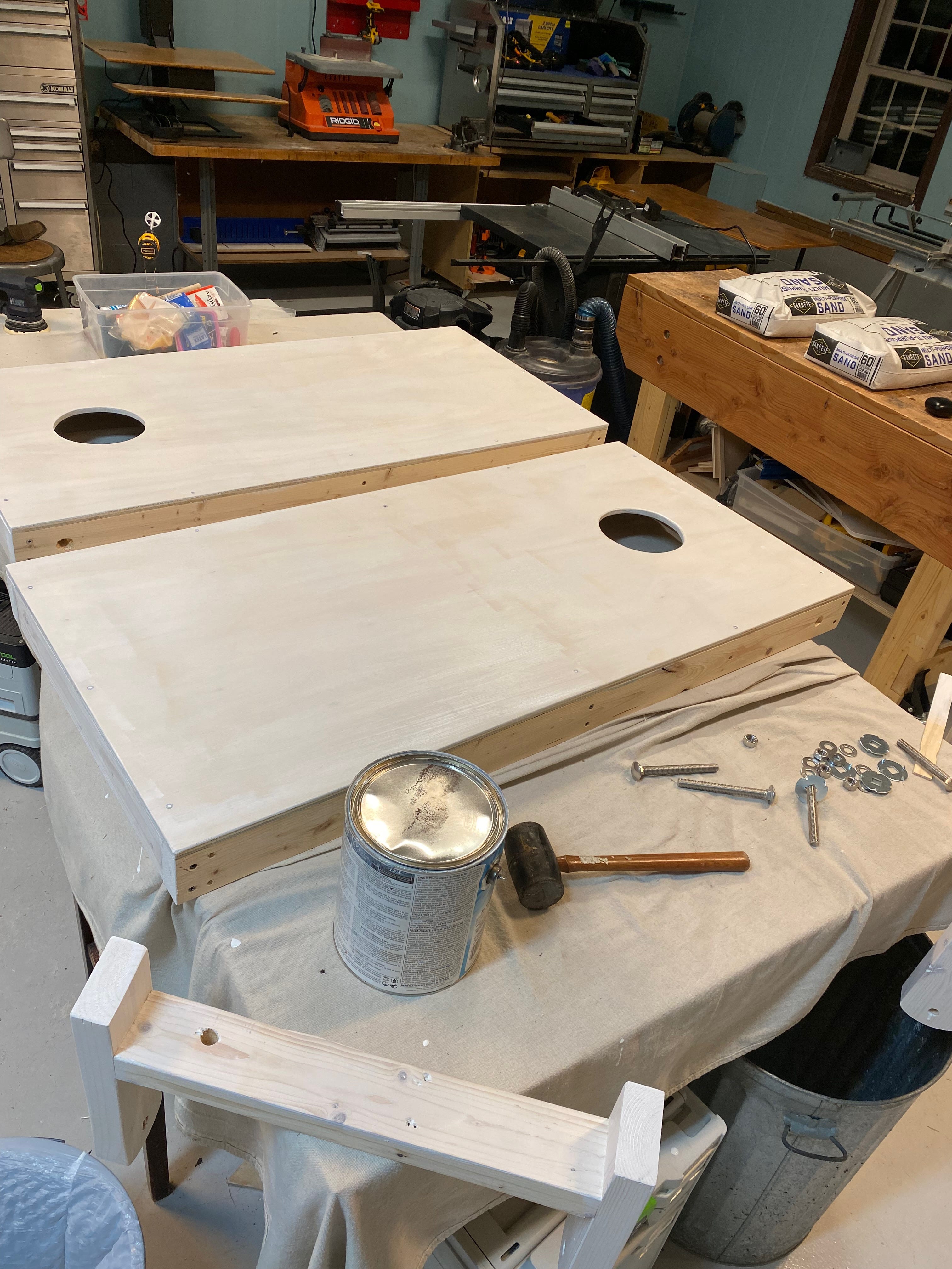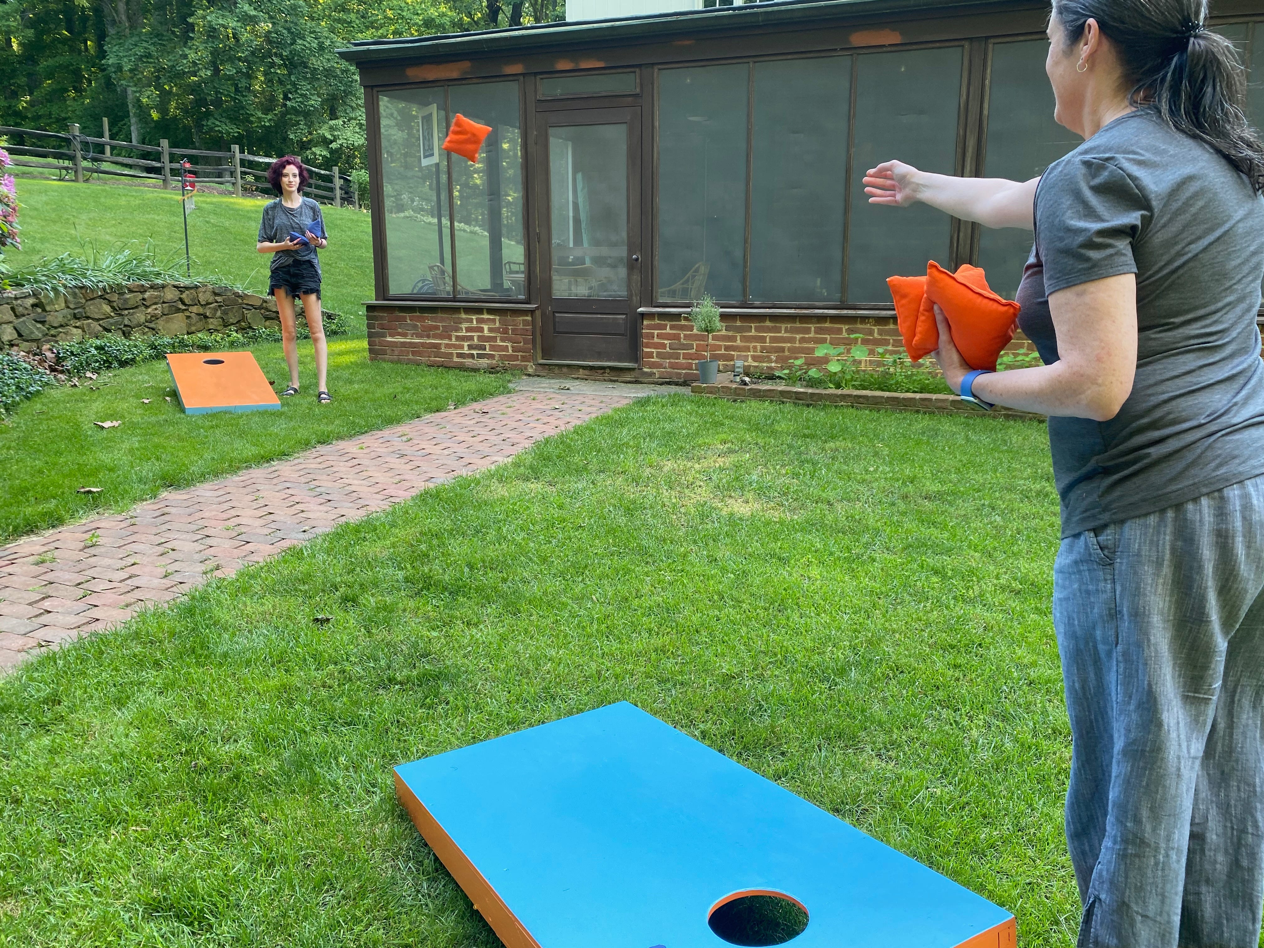 Once the paint was dry — I briefly considered painting some designs on the boards, but decided against it due to my severe lack of artistic/painting skills — it was time to try them out. My wife and daughter dutifully challenged each other to a game during which they determined that I had successfully replicated Andy Cornhole's invention.