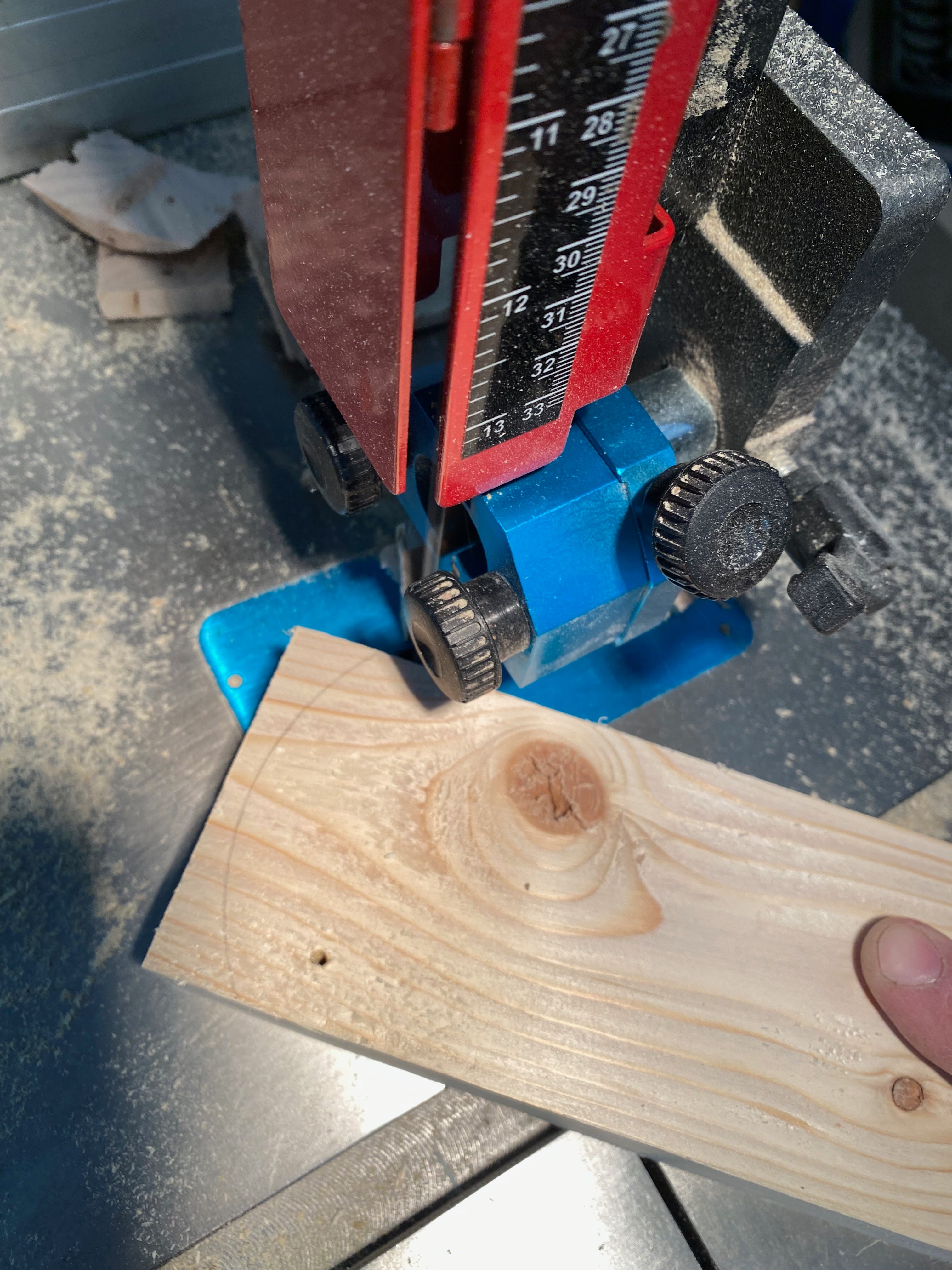 The easiest way I could come up with to determine the leg length, then, was to prop the board up on blocks to its proper height, and then measure the distance from the underside of the top to the ground. That ended up being 11-¼ inches.