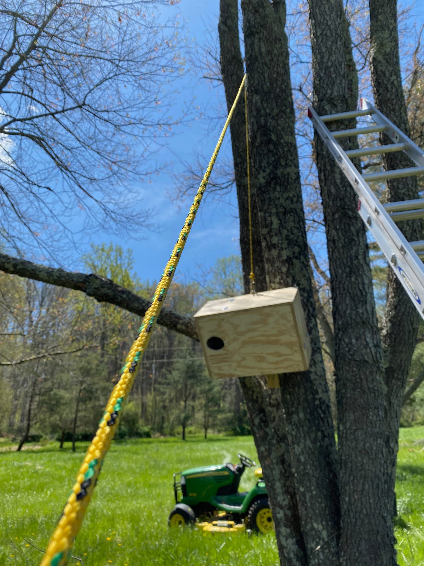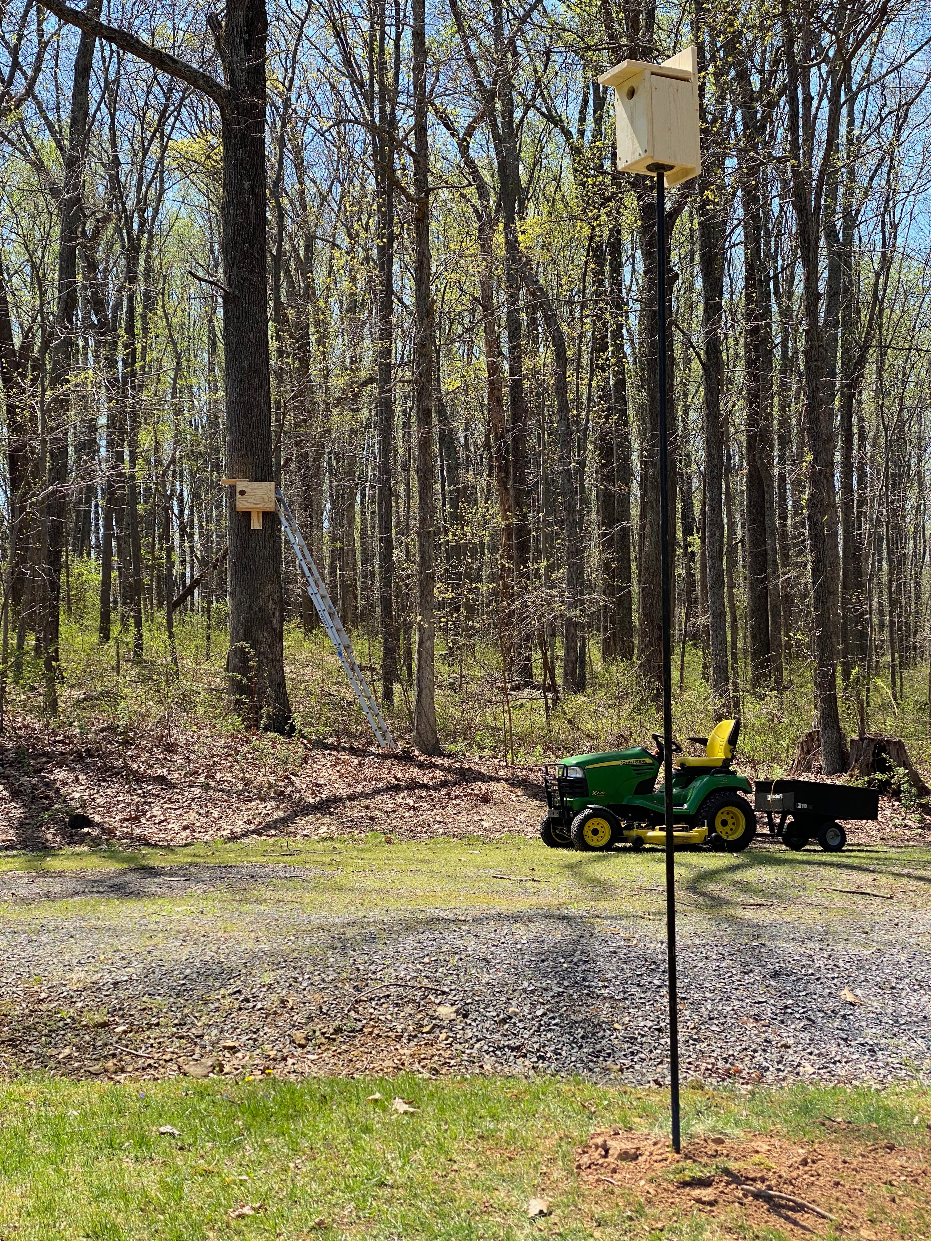 The plan worked. It was safe, quick, and effective. With my wife's help, we got the remaining seven bird boxes hung and mounted in just a couple of hours.