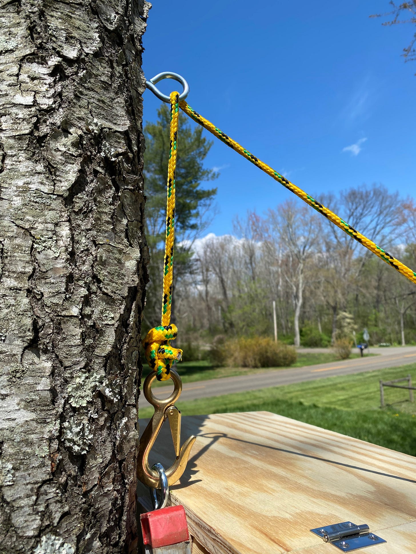 Clearly this was not going to work. I needed to find a better way — some sort of pulley system, perhaps. I channeled the spirit of longtime family friend Stan Gregory — an engineering genius — and came up with an idea.