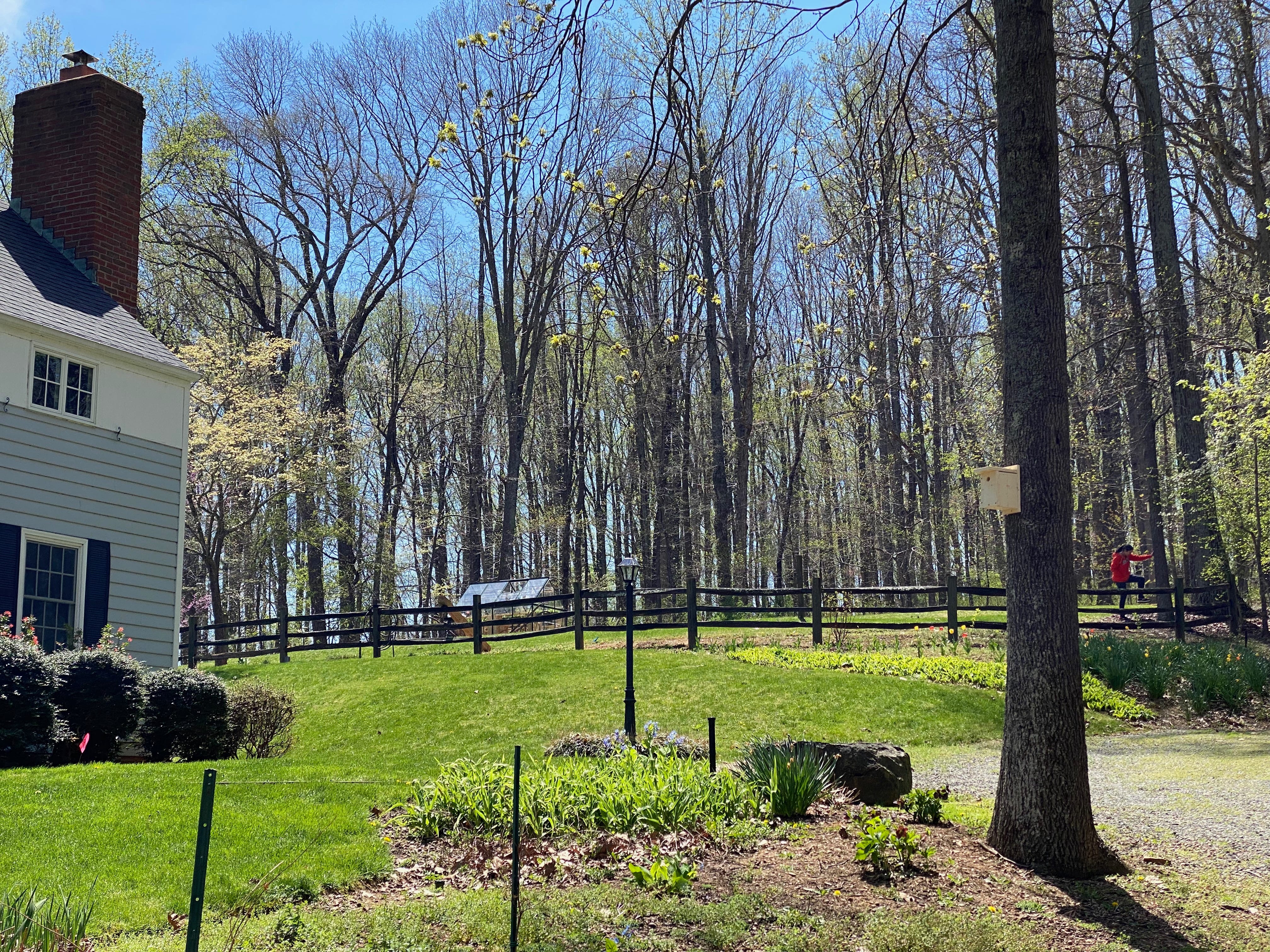 The chickadee boxes were easy to hang — they can be posted on a tree at little more than eye level. A few screws and bingo-bango, they're up.