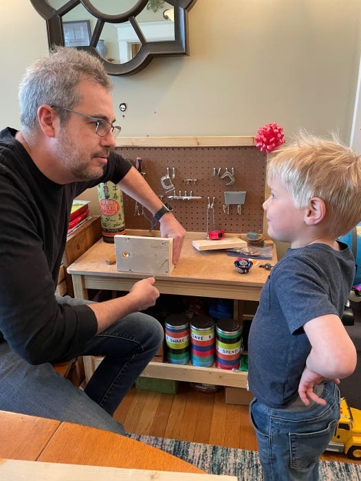 These boxes are so easy to make, in fact, that I put together a little kit for a friend's son (who is the proud owner of his own little workbench) that we built together with just a screwdriver and hammer.