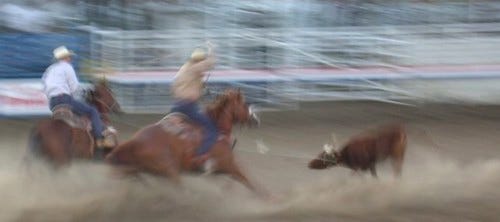 After that, we checked out a few tourist trap stores (all of which sold antique and novelty guns... I love this place!... and cowboy hats) and had a quick meal before going to the rodeo. Now, I had never been to a rodeo before, never thought about going to a rodeo, and never cared about rodeos. Nobody who lives in Cody goes to the rodeo (according to locals), and I loved it. The rodeo consisted of cowboys riding bucking broncos bareback, lassoing calves, riding steers, and "humorous" interludes via the rodeo clown. One of those interludes consisted of the clown headbutting a horned billygoat... the clown was wearing a helmet, though, making it slightly less impressive.
